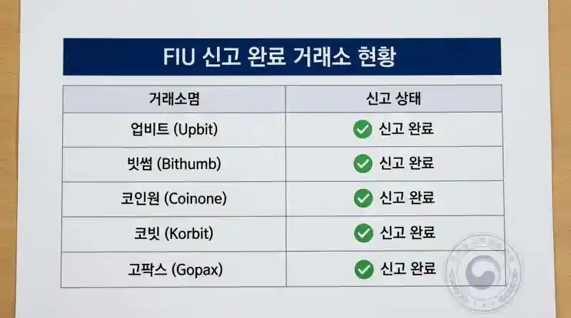 국내 가상자산 거래소는 특정금융정보법에 따라 금융정보분석원(FIU)에 신고해야 해요. 신고를 완료한 거래소만 실명 확인 입출금 서비스를 제공할 수 있고, 이는 자금세탁 방지와 투자자 보호를 위한 최소한의 안전장치랍니다. 2026년 1월 현재 업비트, 빗썸, 코인원, 코빗 등 약 30개 거래소가 신고를 완료한 상태예요.